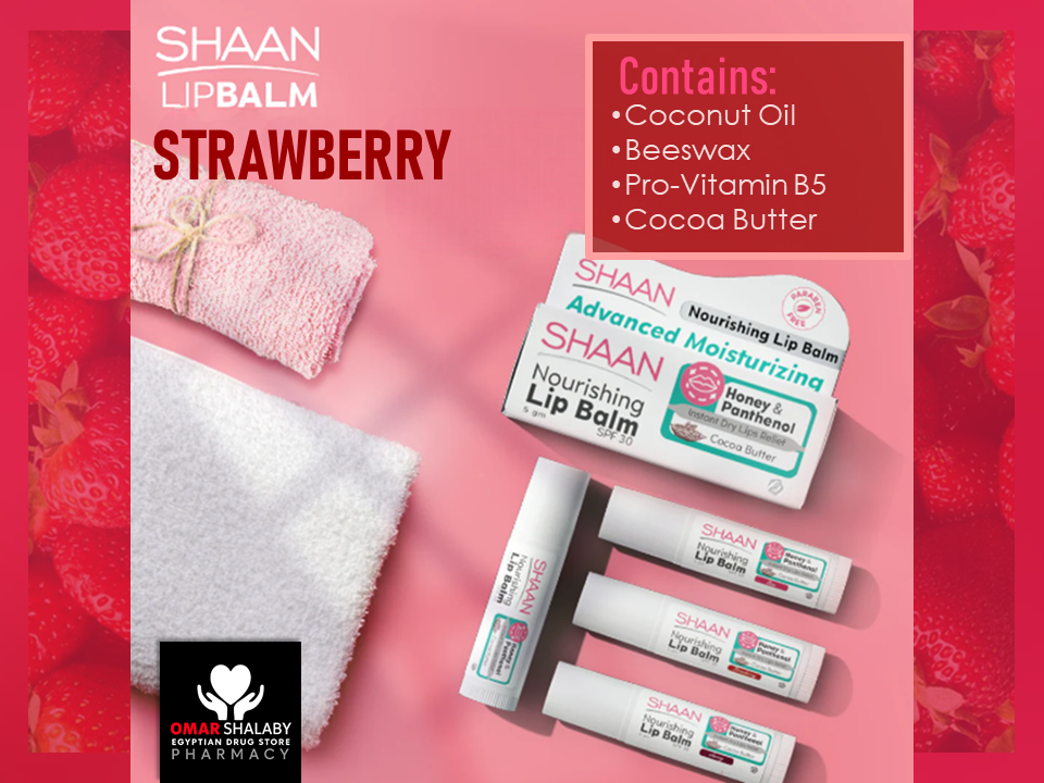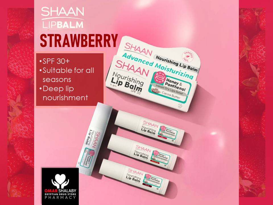 SHAAN ADVANCED MOISTURIZING NOURISHING LIP BALM (SPF 30+) WITH COCOA BUTTER — STRAWBERRY 5 GM
