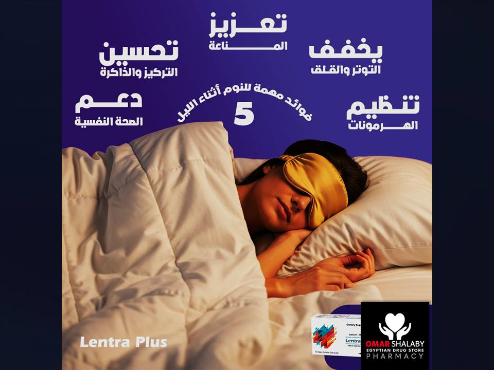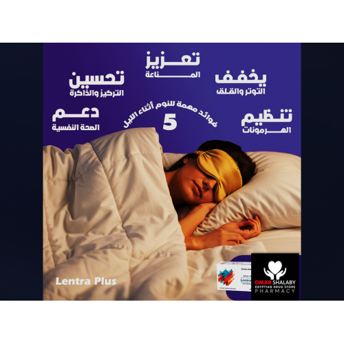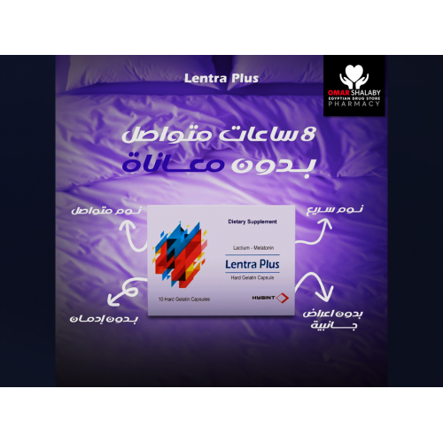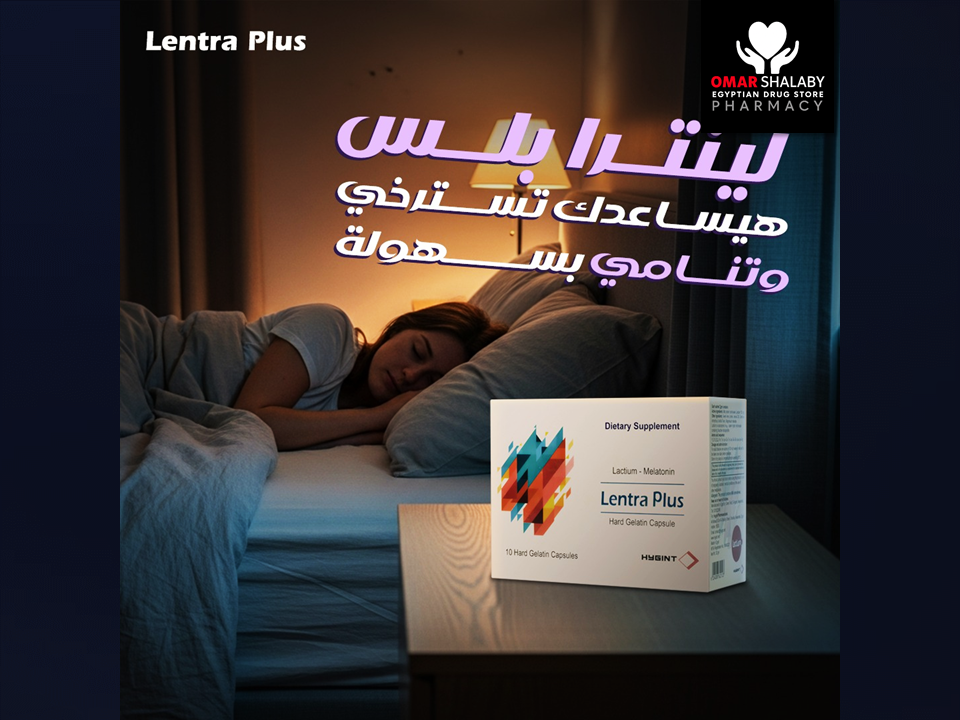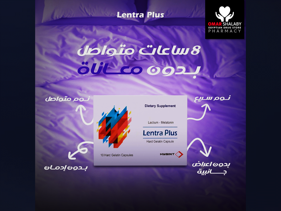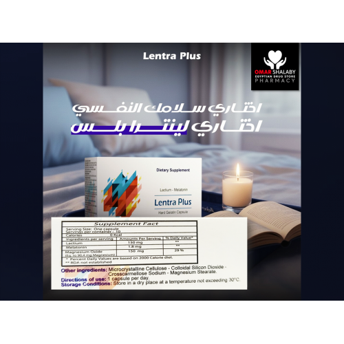 LENTRA PLUS is a dietary supplement formulated to support relaxation, stress reduction, and healthy sleep. It combines Lactium®, a milk-derived bioactive peptide that helps reduce stress and promote calmness, melatonin, which supports regulation of the sleep–wake cycle and improves sleep onset, and magnesium, an essential mineral that supports nervous system function and muscle relaxation. The product is intended to help improve sleep quality and mental relaxation, especially in individuals experiencing stress-related sleep disturbances.