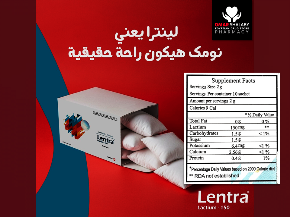LENTRA LACTIUM is a dietary supplement containing Lactium® (milk protein hydrolysate), a bioactive peptide derived from α-S1 casein. It is formulated to support stress reduction, relaxation, and emotional balance by modulating the nervous system without causing sedation. The product may help improve stress-related symptoms and sleep quality and is intended for adults experiencing mild stress, anxiety, or tension. It is not intended for the treatment or prevention of disease.