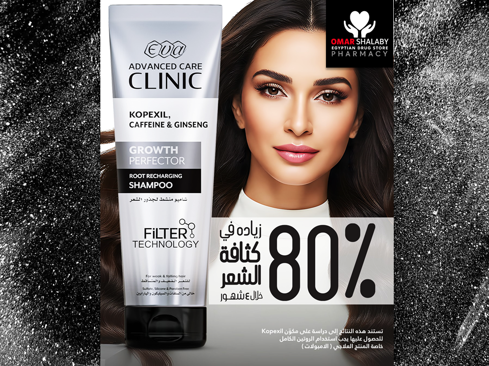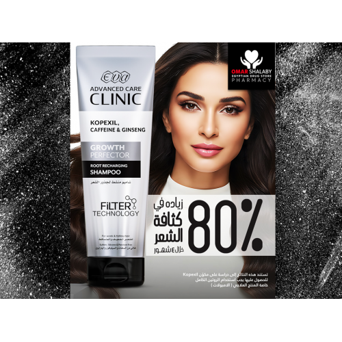 EVA Advanced Care Clinic Growth Perfector Root Recharging Shampoo is a cosmetically formulated cleansing product designed for weak, thinning, or shedding hair. It contains Copexil, caffeine, and ginseng extract, which are included to support the scalp environment and hair follicle function: