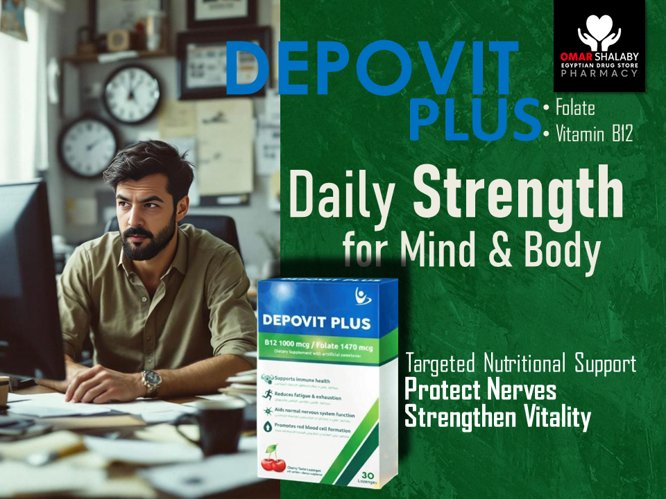 Depovit Plus is a dietary supplement formulated with a high-potency combination of Vitamin B12 (as Hydroxocobalamin) and Folate (as Calcium L-Methylfolate) in a convenient lozenge form to support optimal hematologic and neurologic function.